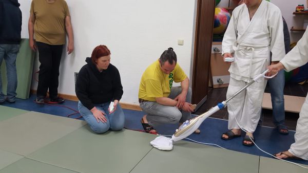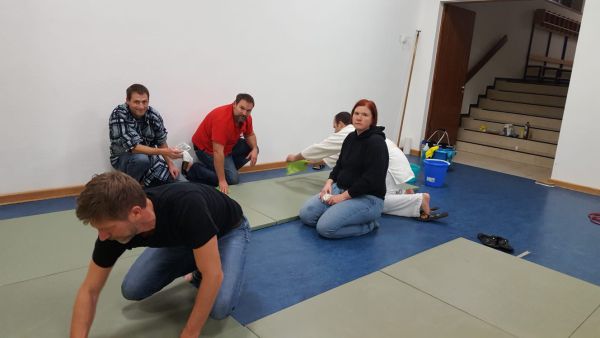 Heute stand Mattenreinigen auf dem Plan. Es war sehr erfreulich, dass so viele mitgearbeitet haben.