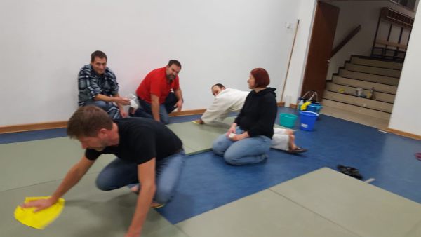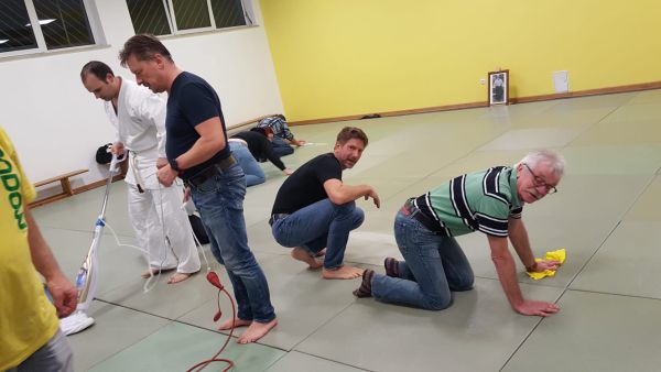 Heute stand Mattenreinigen auf dem Plan. Es war sehr erfreulich, dass so viele mitgearbeitet haben.
