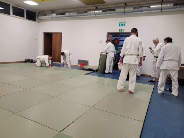 Das Sauberkeit unseres Dōjō reflektiert die Übung wider, die wir in ihm betrieben. Deshalb gehört das Reinigen des Dōjōs (Soji) nach alter Tradition zur Budō-Etikette. Es stammt aus dem Zen, in dem die körperliche Arbeit eine Übung zur richtigen inneren Haltung war. Immer ist und war immer wichtig, selbst kleine alltägliche und notwendige Pflichten mit großer und ganzer Aufmerksamkeit zu verrichten. Es ist eine Übung der Achtung, des Respekts, der Achtsamkeit und als solche keine Arbeit, sondern eine geistige Disziplin. Wir waren auf der Matte und arbeiteten mit Freude und sozialem Miteinander. Es brachte etwas für unsere Selbstkontrolle und Selbsterziehung.